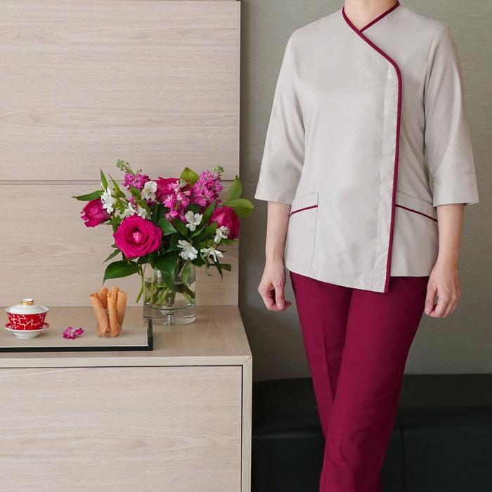 SERAGAM SUSTER / PERAWAT FITFORM TAUPE-CHERRY SIDE WRAP - PENDEK, S