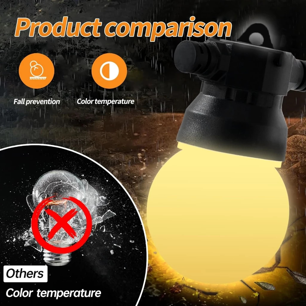 Kabel Fitting 15 meter 15 Lampu LED Lampu Gantung Outdoor Tahan Air Kafe Bola Komplit Lampu