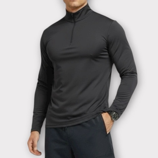 AHS - Kaos Baju Olahraga Lengan Panjang Half Zipper Long Sleeve Pria Wanita Gym Running Jogging Lari Fitnes
