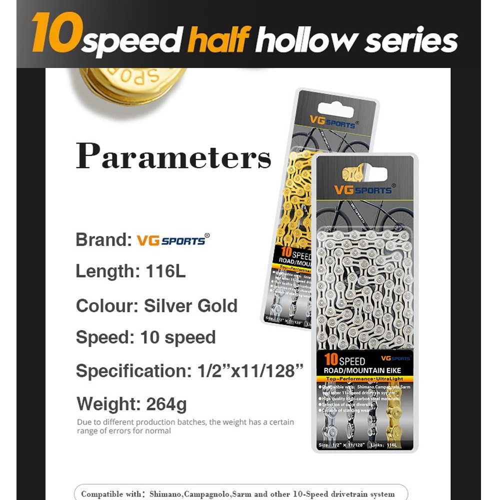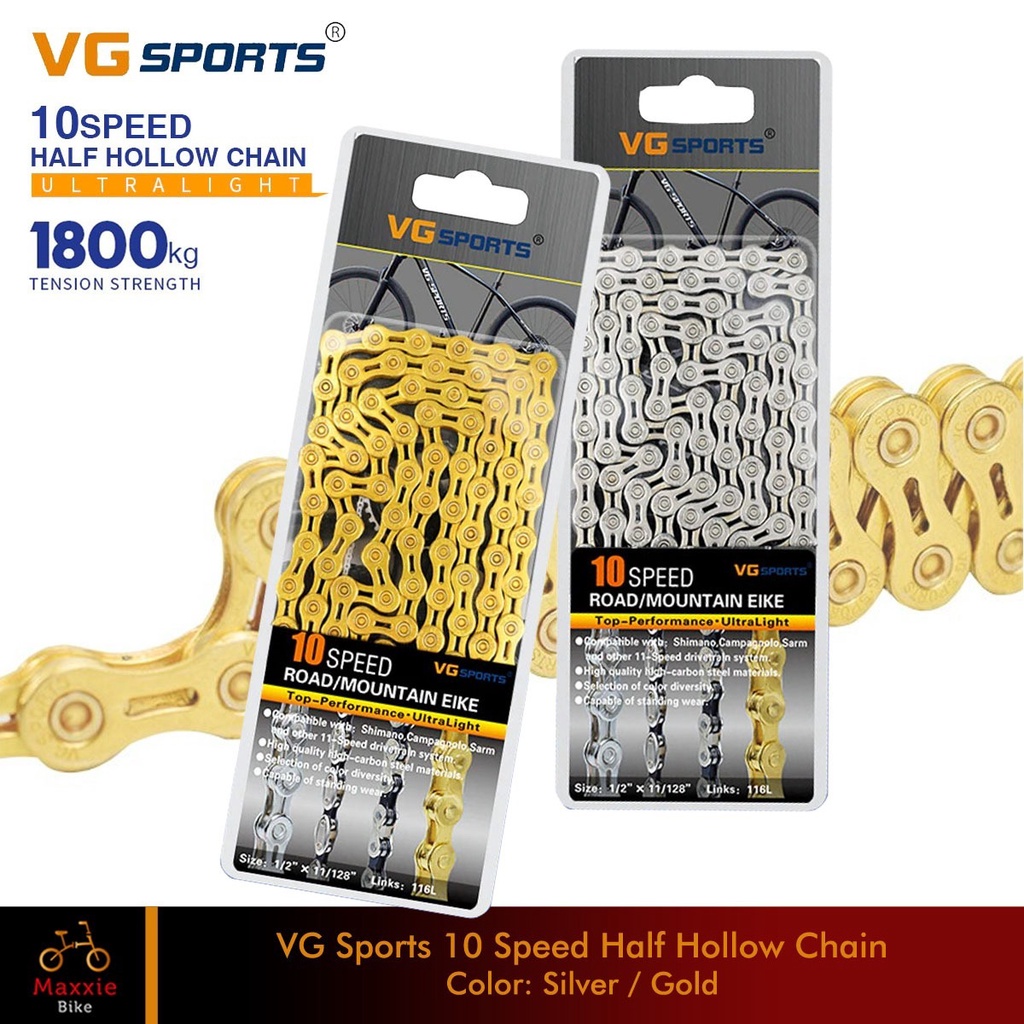 Vg Sports Rantai Sepeda Bicycle Chain Half Hollow 10 Speed Gold Silver