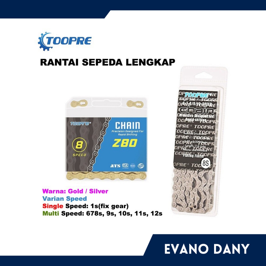 Rantai Toopre Sepeda Original 6/7/8 9 Speed Silver Dan Gold Original