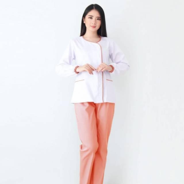 LIMITED SERAGAM BABY SITTER LENGAN PANJANG ZOE WHITE PEACH / SERAGAM SUSTER - S