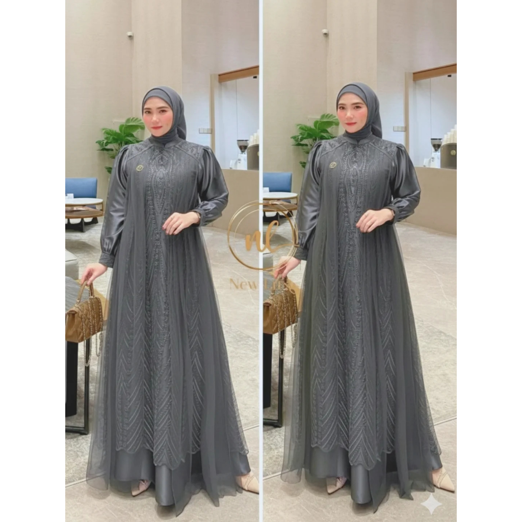 Leya Dress Lebaran Mewah Gamis Mahogany Brukat Premium Kombinasi Tille Polos Baju Gamis Kondangan Wanita Model Terbaru 2026