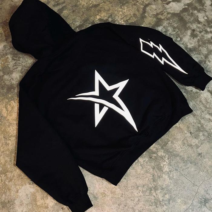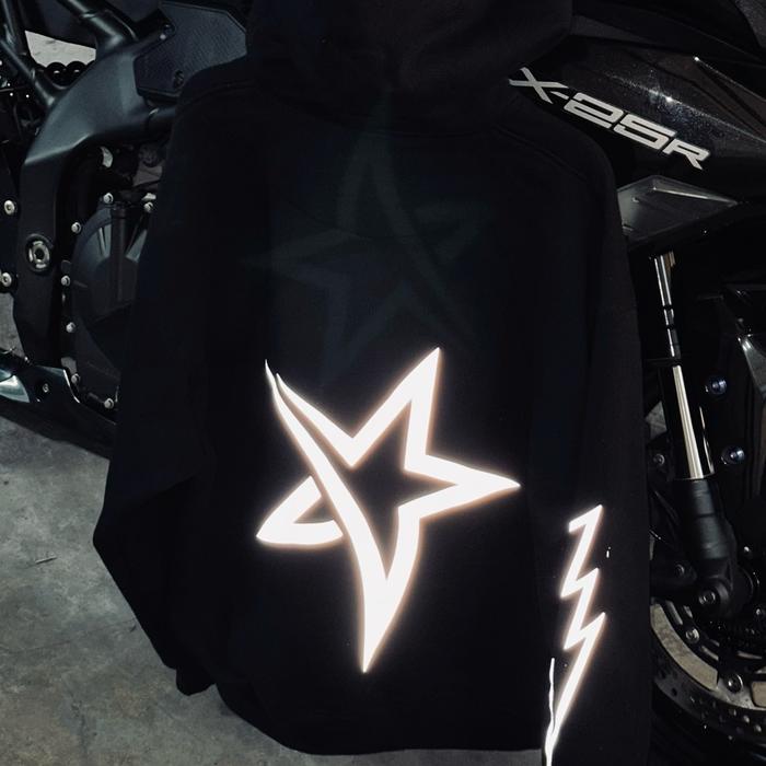 HOODIE COTTON FLEECE 330GSM & 280GSM MOTIF HIGHTSTAR BLACK - HITAM330GSM, M