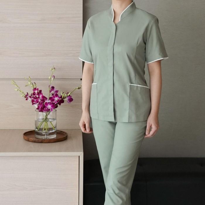 TERLARIS SERAGAM KERJA WANITA / SUSTER / BABY SITTER - MANDARIN COLLAR W/ TRIM (CELANA PANJANG) - BLACK, M