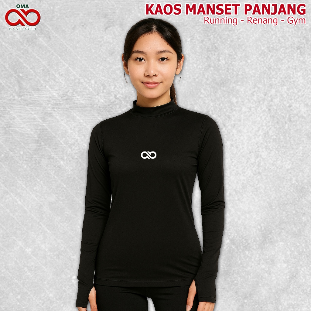 Baju Kaos Baselayer Manset Olahraga Renang Wanita Pria Lengan Panjang Bersepeda Futsal Gym Senam