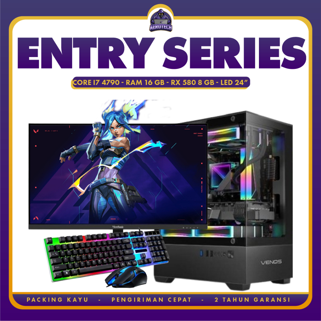 AEROTECH ENTRY PC RAKITAN GAMING LIVE STREAMING INTEL I7 4790 | RAM 16 GB | VGA 8 GB | LED 24 INCH 100 HZ FULLSET SIAP P