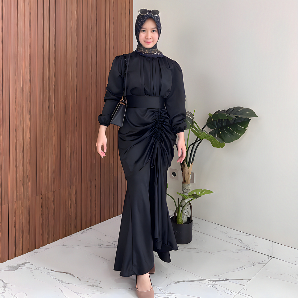 Herita Collection - Dress Serut Kondangan Vanya Satin Silk Size M L XL / Baju Gamis Wanita Terbaru 2026 / Gamis Pesta Mewah Elegan / Dress Bridesmaid / Gamis Lebaran Wanita