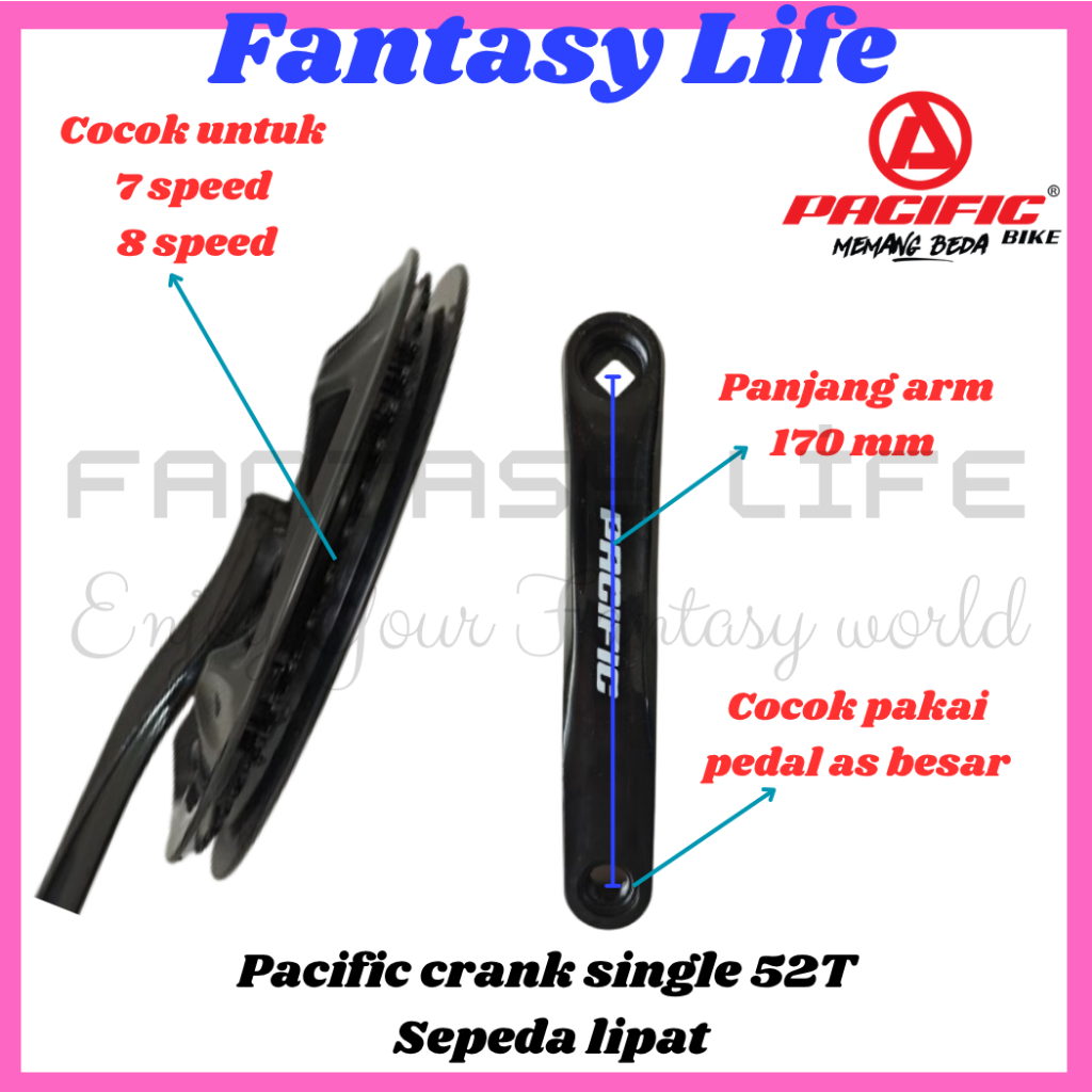 Fantasy Pacific Crank Single Chainring 52T Arm Alloy 170 Mm Sepeda Fixie Lipat