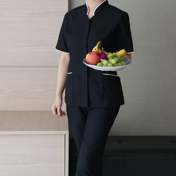 SERAGAM KERJA WANITA / SUSTER / BABY SITTER - MANDARIN COLLAR W/ TRIM (CELANA PANJANG) - BLACK, M