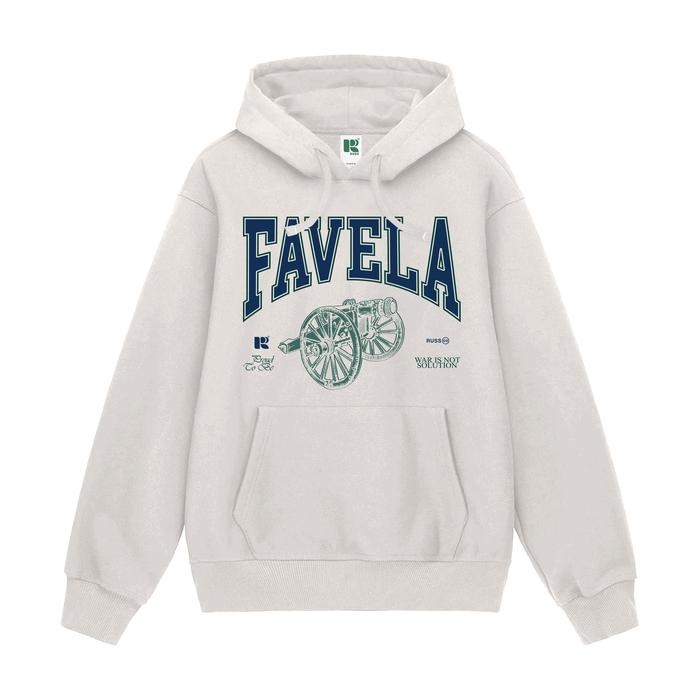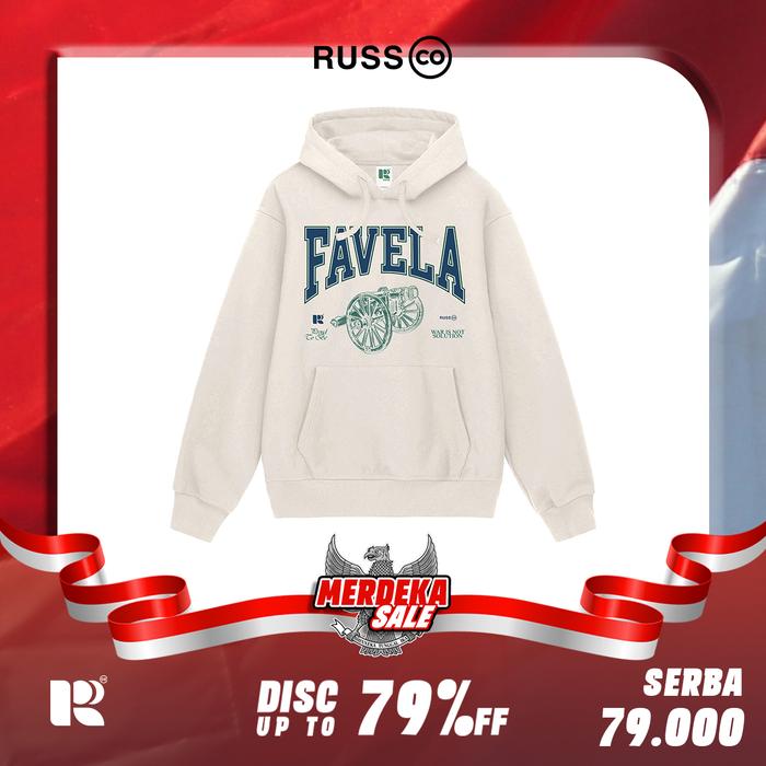 RUSS SWEATER HOODIE FAVELA BROKEN WHITE FLEECE - JAKET COWOK OUTDOOR BAHAN TEBAL KEREN & CASUAL - XL