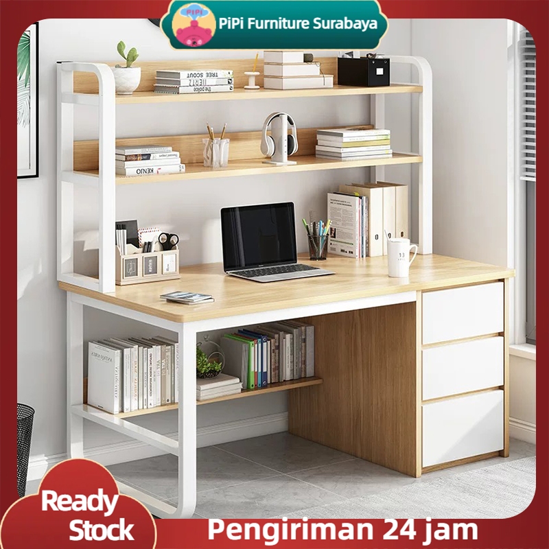Pipi furniture Meja Belajar Kayu /Meja Belajar rak/Meja komputer/Meja Laptop/Meja Belajar Minimalis/Meja Kerja/Minimalis