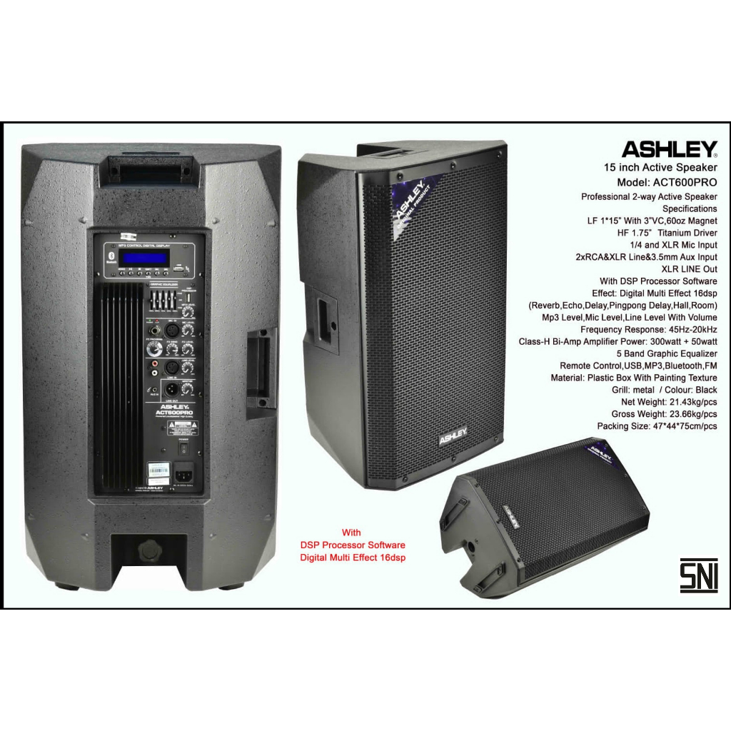 SPEAKER AKTIF ASHLEY ACT 600 PRO ACT600PRO ORIGINAL 15 INCH 350 WAT ACT600 PRO SNI