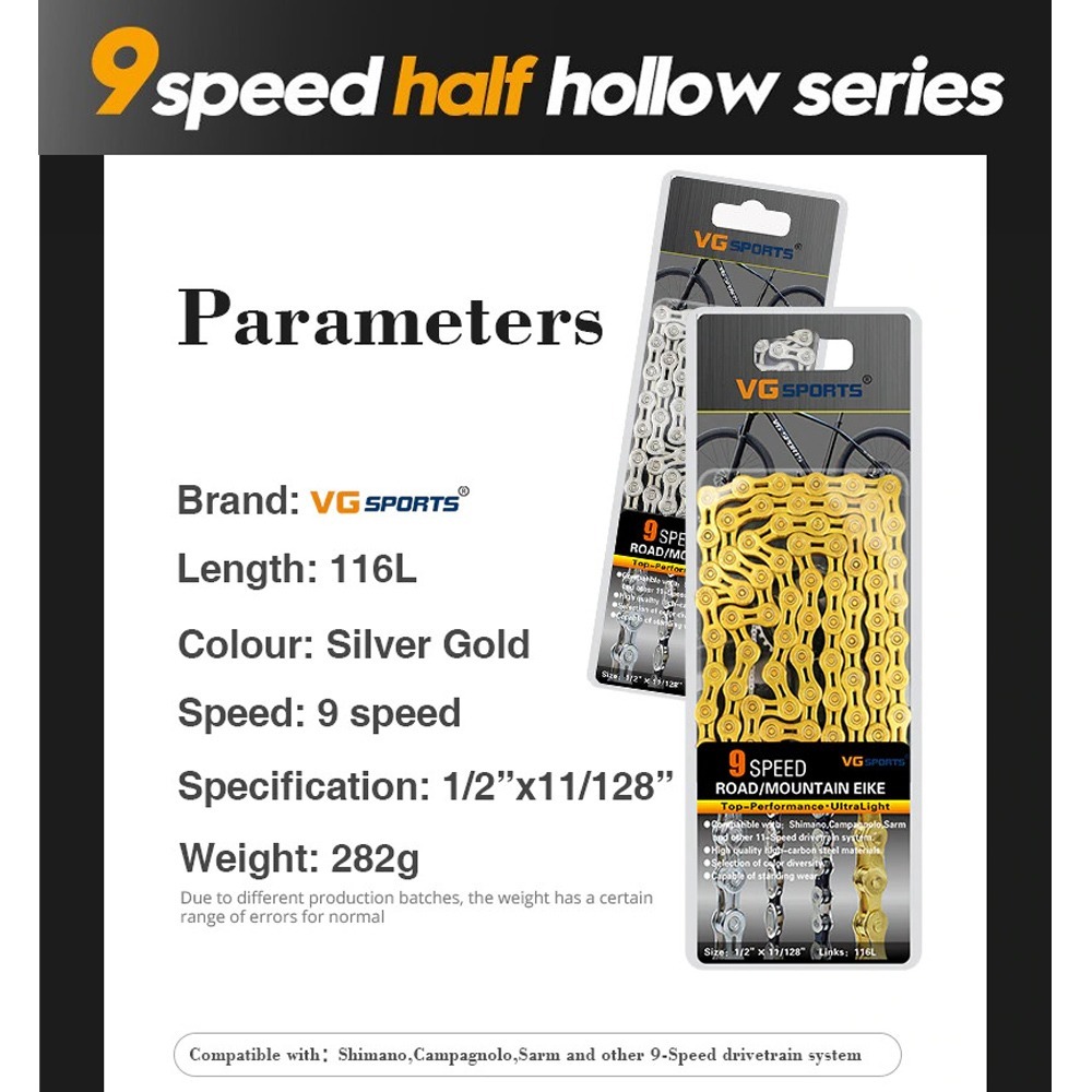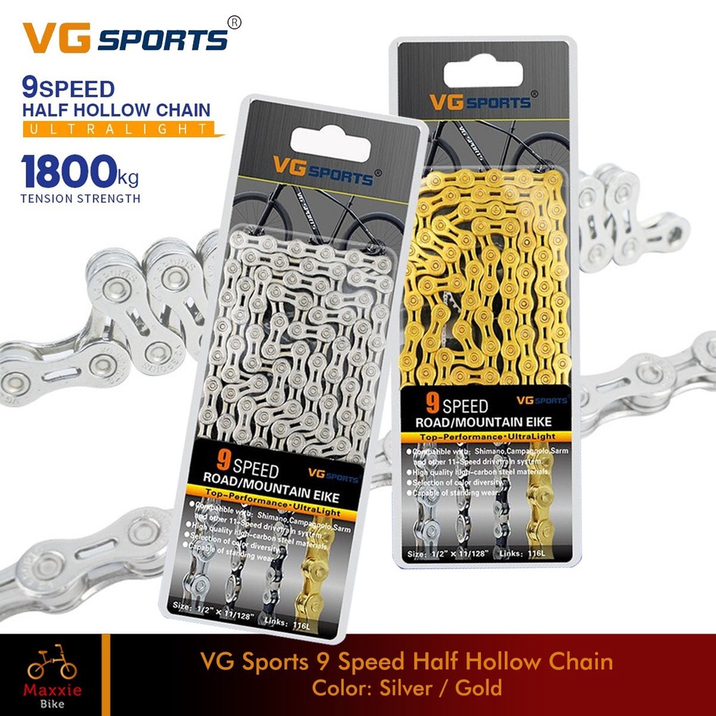 Vg Sports Rantai Sepeda Bicycle Chain Half Hollow 9 Speed Gold Silver