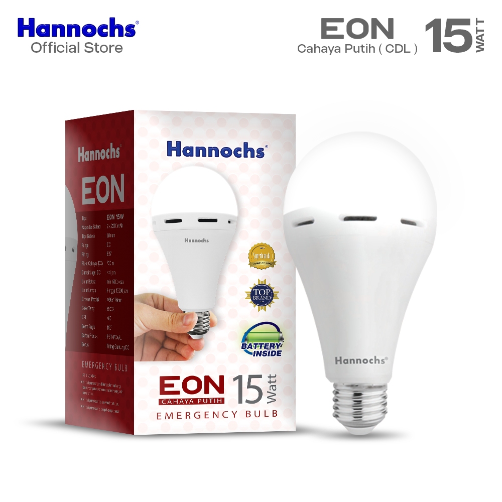 Hannochs Lampu Emergency Bohlam LED EON 15W Cahaya Putih isi 2pcs