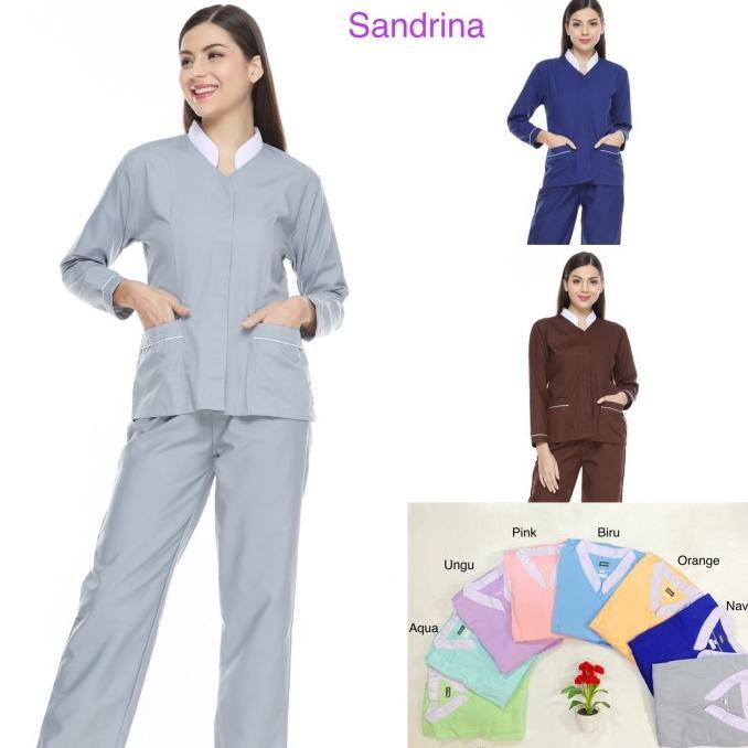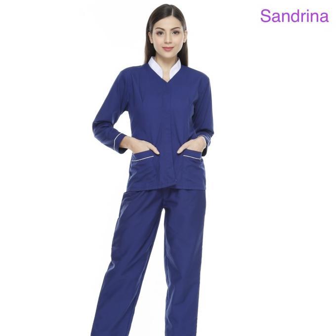 BAJU SERAGAM SUSTER LENGAN PANJANG/ SERAGAM BABY SITTER/SERAGAM KLINIK - BIRU, S