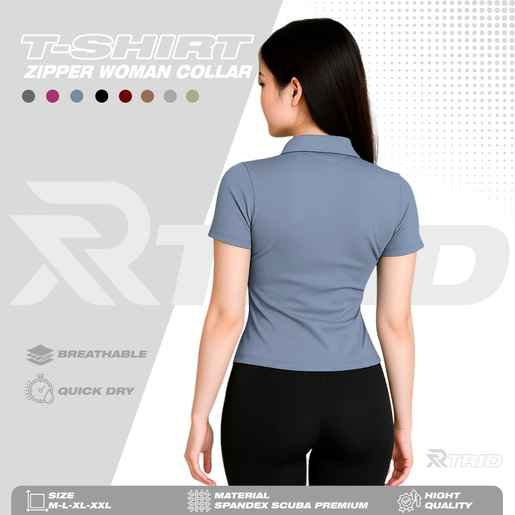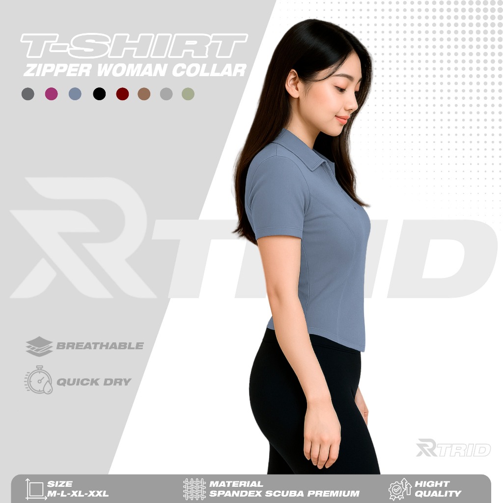 THEREAL.ID - Kaos Crop Top Wanita Lengan Pendek Ziper Olahraga Gym Running Hiking Yoga Cating Opval