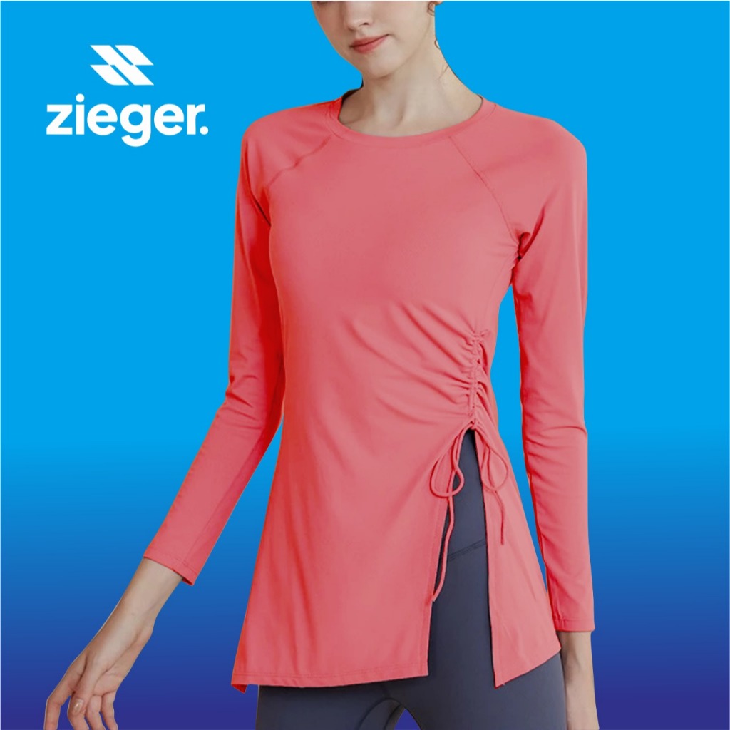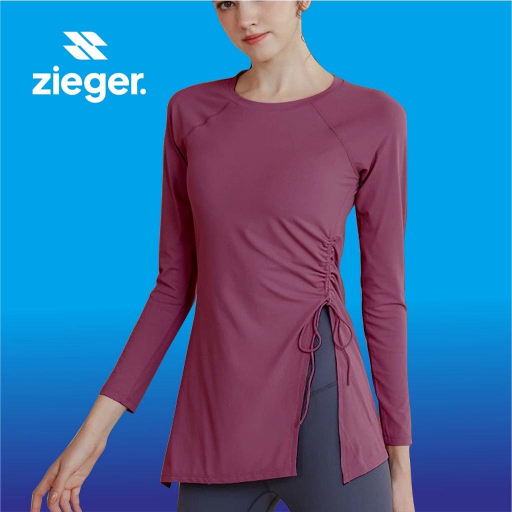 ZIEGER ACTIVEWEAR Baju Olahraga Wanita Serut Pinggang panjang Gym fitnes KAOS LENGAN PANJANG SPORT