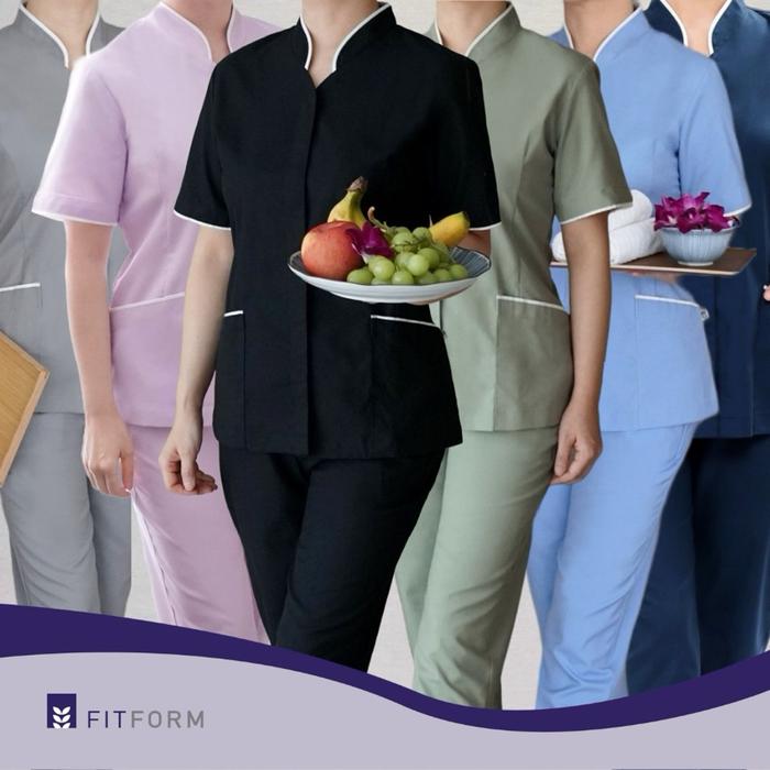 SERAGAM KERJA WANITA / SUSTER / BABY SITTER - MANDARIN COLLAR W/ TRIM (CELANA PANJANG) - BLACK, S