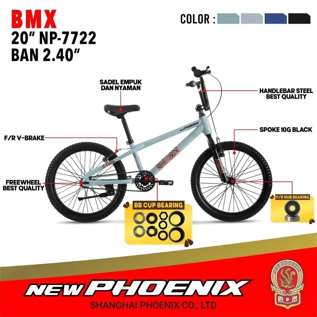 Sepeda Bmx New Phoenix Np-7722 20 Inch Ban 2.40 Free Helm