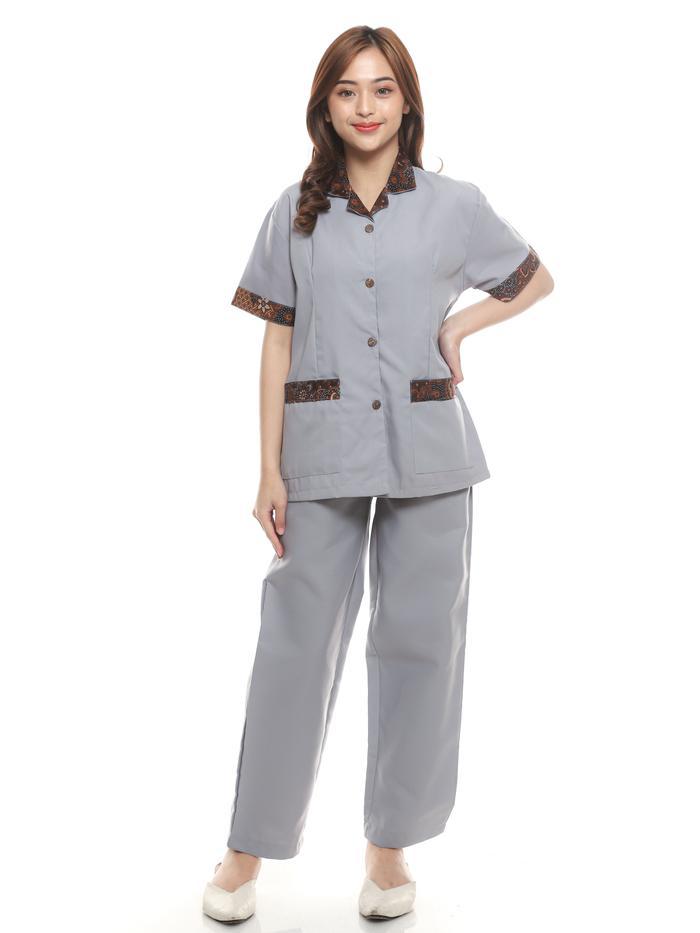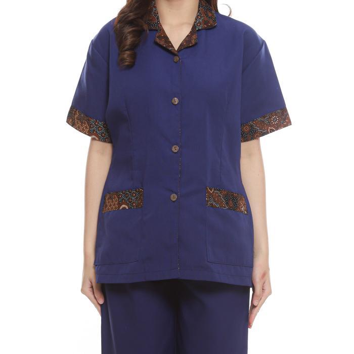 [SANDRINA] BAJU SERAGAM SUSTER, BABY SITTER WANITA KOMBINASI BATIK TERLARIS - NAVY, S