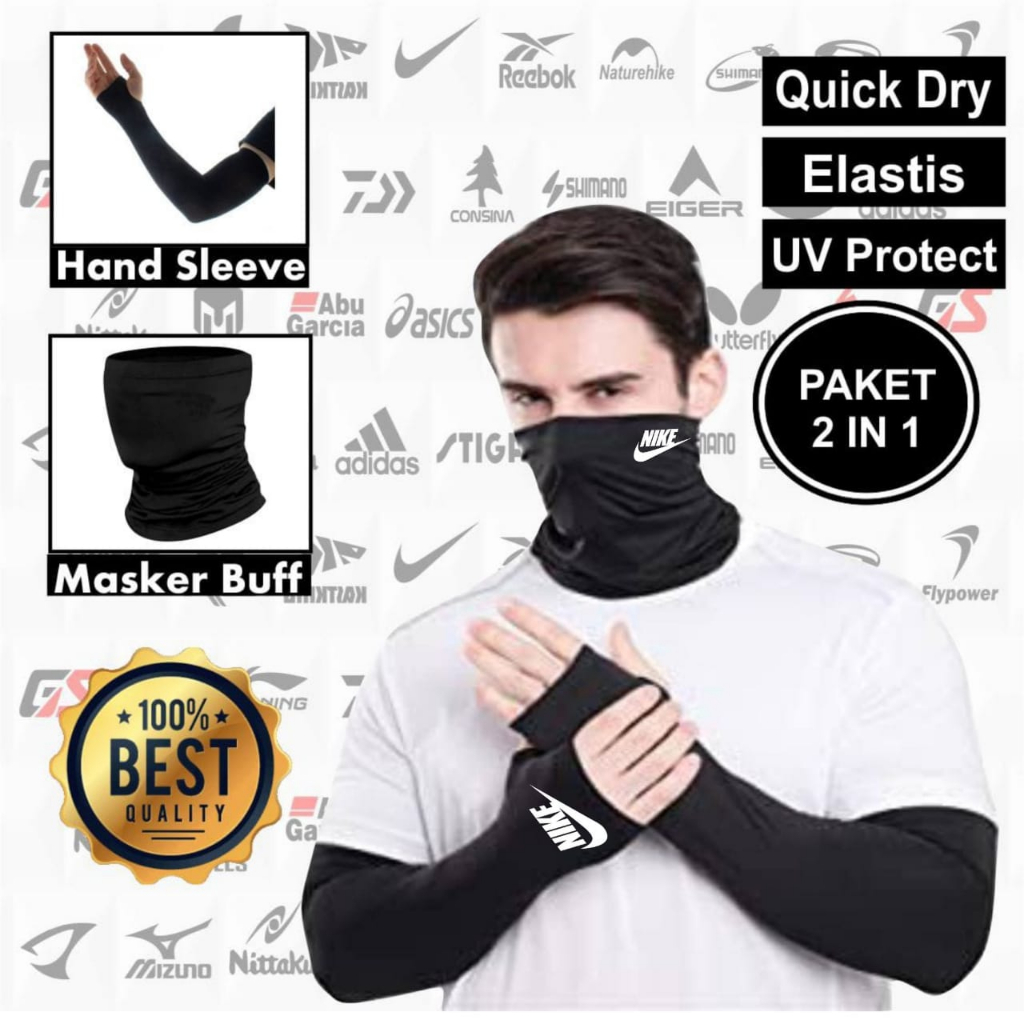 Paket hemat buff masker hiking hand sleeve manset sarung tangan mendaki