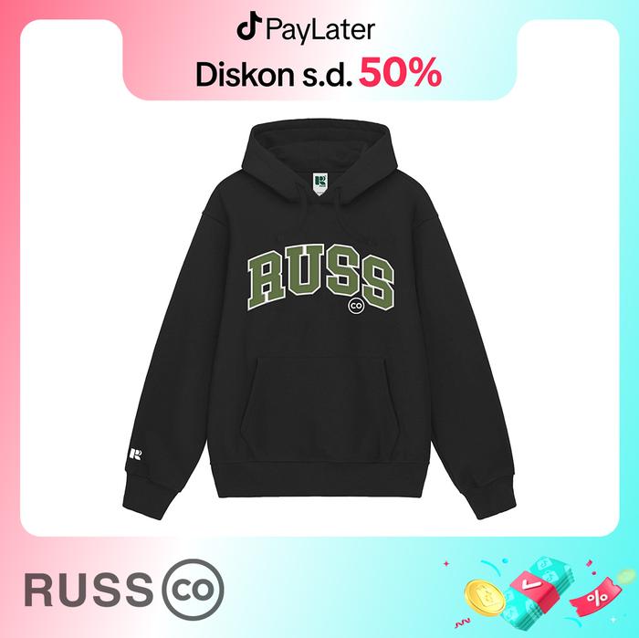 RUSS SWEATER HOODIE PRIA OLDSKULL BLACK ( UP TO BIG SIZE ) FLEECE NYAMAN BORDIR CASUAL HITAM - S