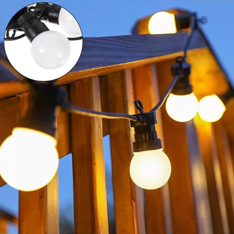 QIMEDO 30 Kuning Lampu 30 Meter Kabel Fitting Kafe Komplit Lampu Led Outdoor Tahan Air Casing Putih