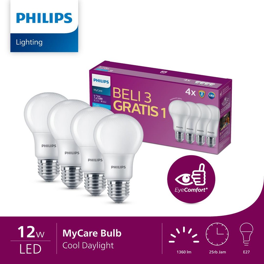 Lampu Philips LED Bulb MultiPack MyCare Bohlam 12W 6500K Putih