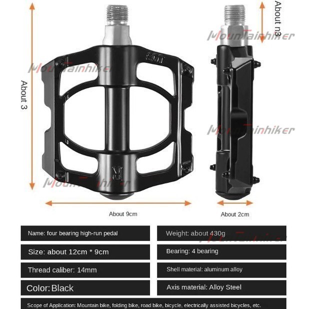 Pedal Sepeda 3 Bearing - Bahan Alloy Ringan & Kuat Dengan Permukaan Anti Slip - Cocok Untuk Sepeda Gunung Mtb, Lipat,
