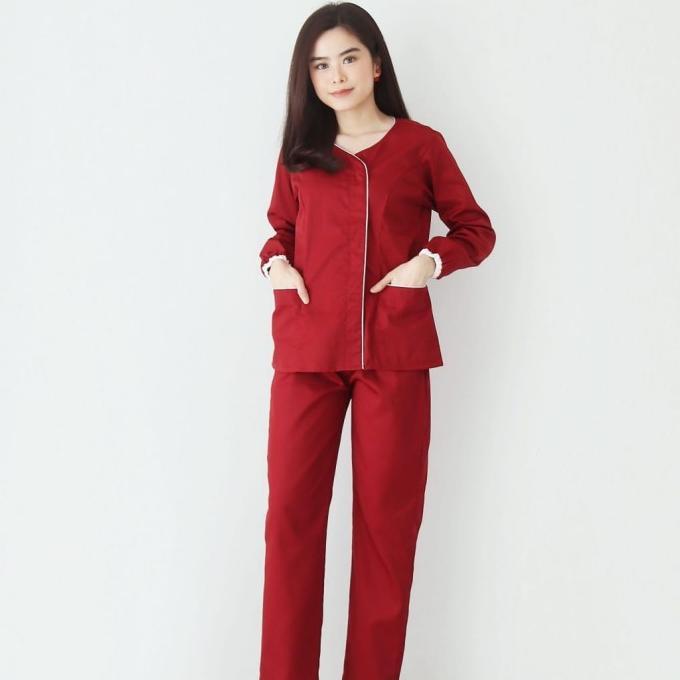 BAJU SUSTER TANGAN PANJANG ZOE / SERAGAM BABY SITTER / BAJU NANNY - MARUN, S