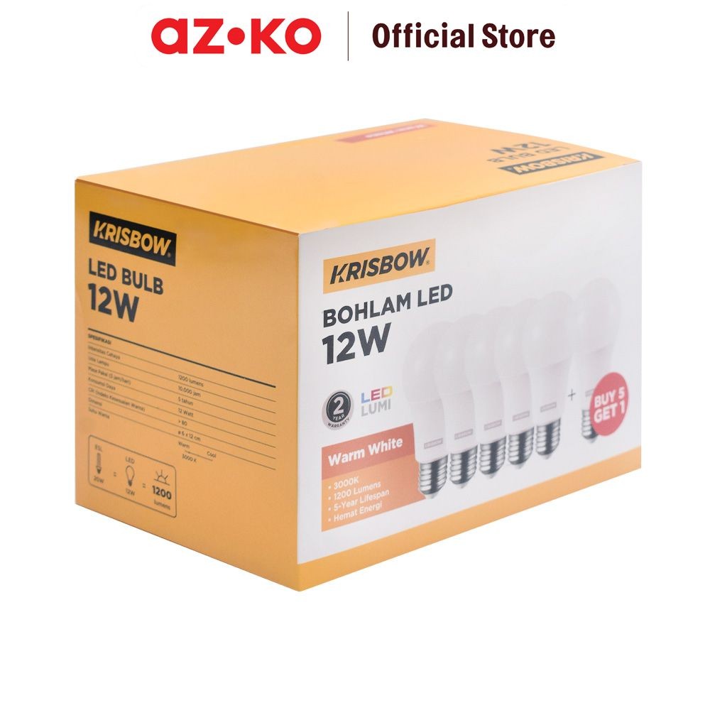AZKO Krisbow Set 6 Pcs Lumi Bohlam Led 12 watt Bulb Lampu Cahaya Putih Indoor Outdoor Light Led Light Bolam