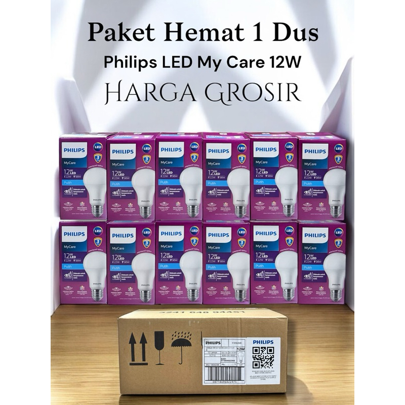 PAKET 1 DUS ISI 12 PCS LAMPU PHILIPS LED MYCARE 3W 4W 6W 8W 10W 12W 3 4 6 8 10 12 W WATT BELI 3 GRATIS 1 ORIGINAL BERGARANSI RESMI