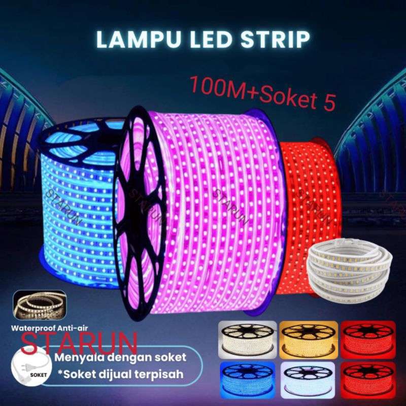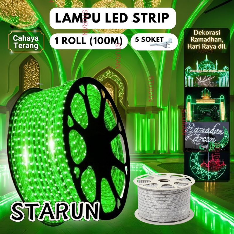 LED STRIP LAMPU STRIP lampu RAMADHAM idul fitri SMD AC 220V Lampu Led Strip Selang 100M+Soket 5pcs Outdoor raja