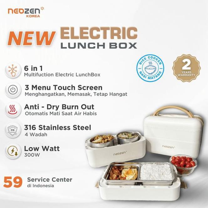 Neozen New Electric Lunch Box Version 2 Kotak Makan Listrik Portable 6 In 1 Versi 2 Untuk Menghangatkan Dan Memasak
