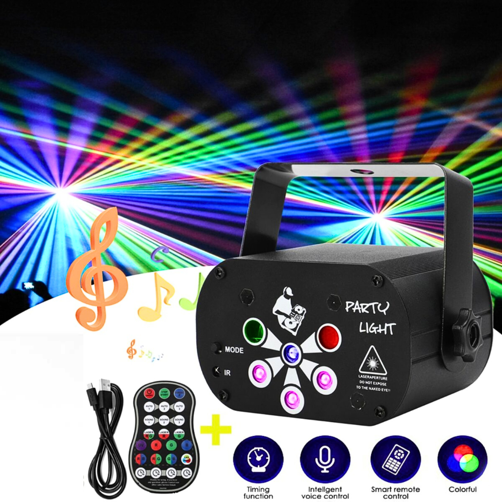 SOWIXE Lampu Disco laser sensor suara musik sorot panggung Proyektor LED RGB 60 Patterns 240V YXE 15