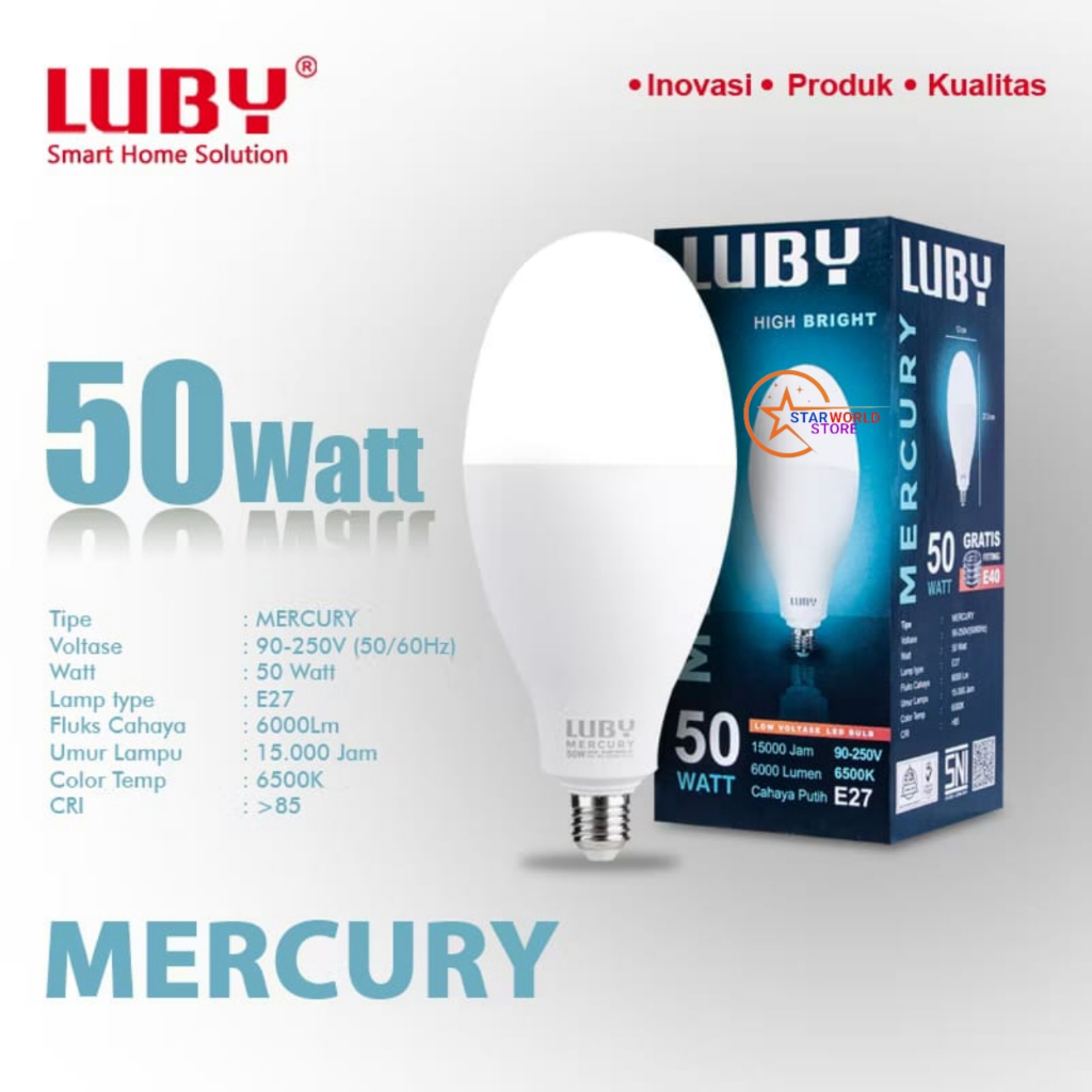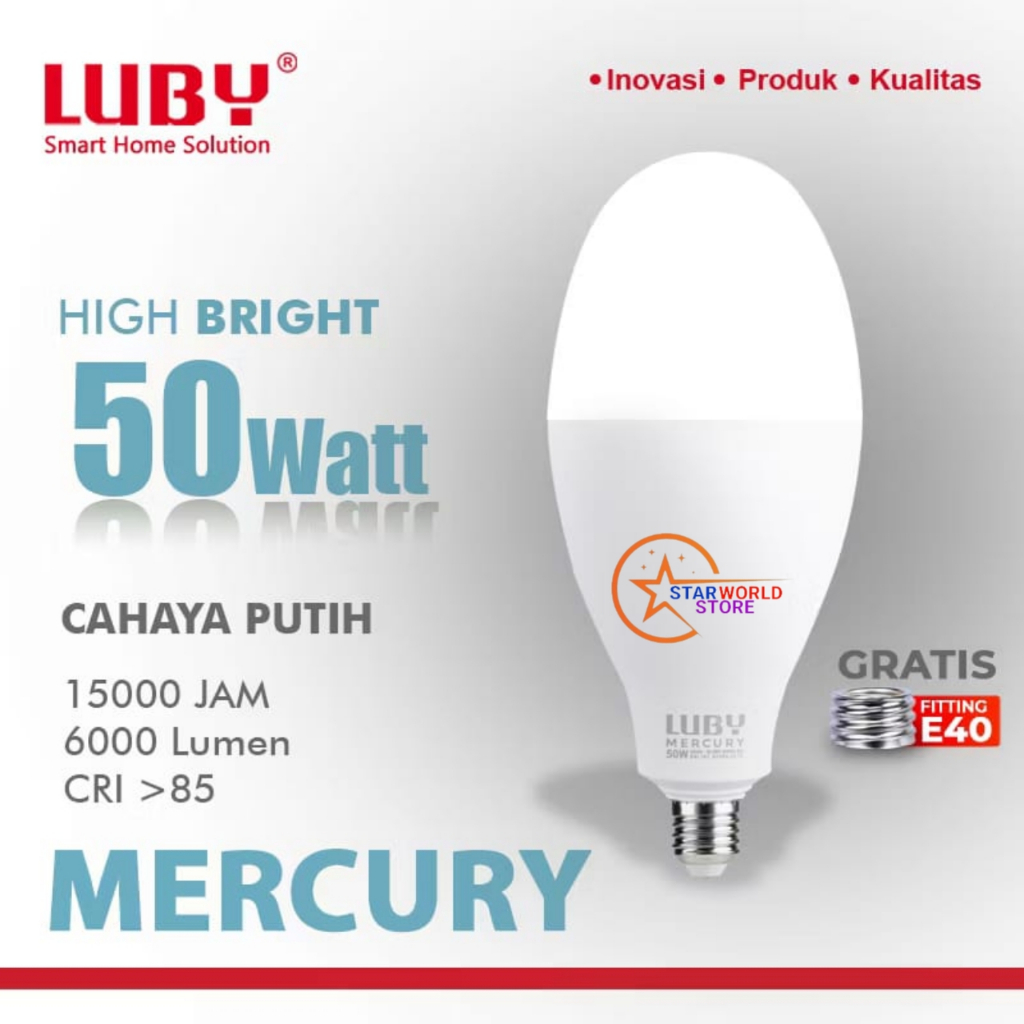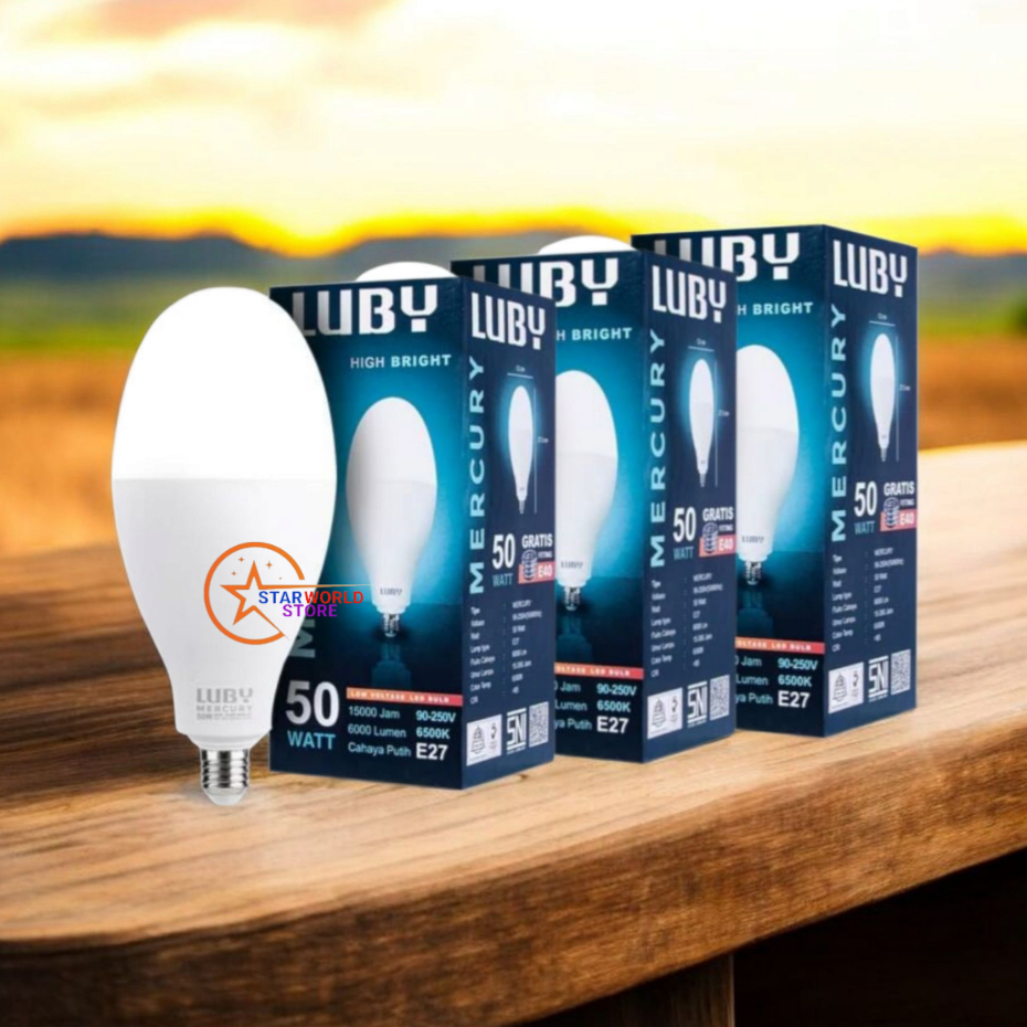 Paket Bundling 3 Pcs LUBY Lampu Bohlam LED Mercury Fitting E27 E40 50 Watt Cahaya Putih & Kuning
