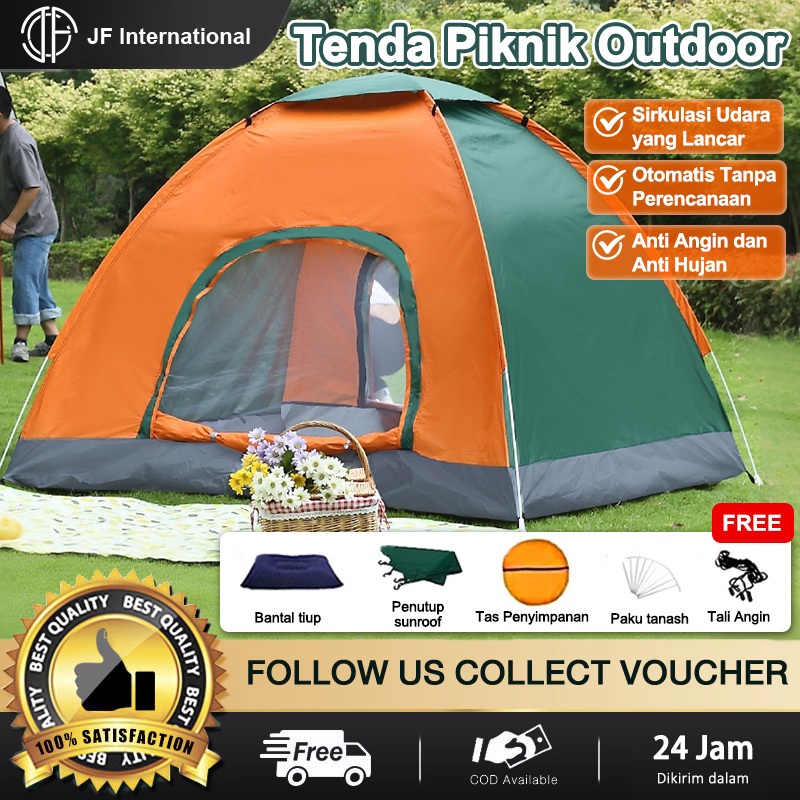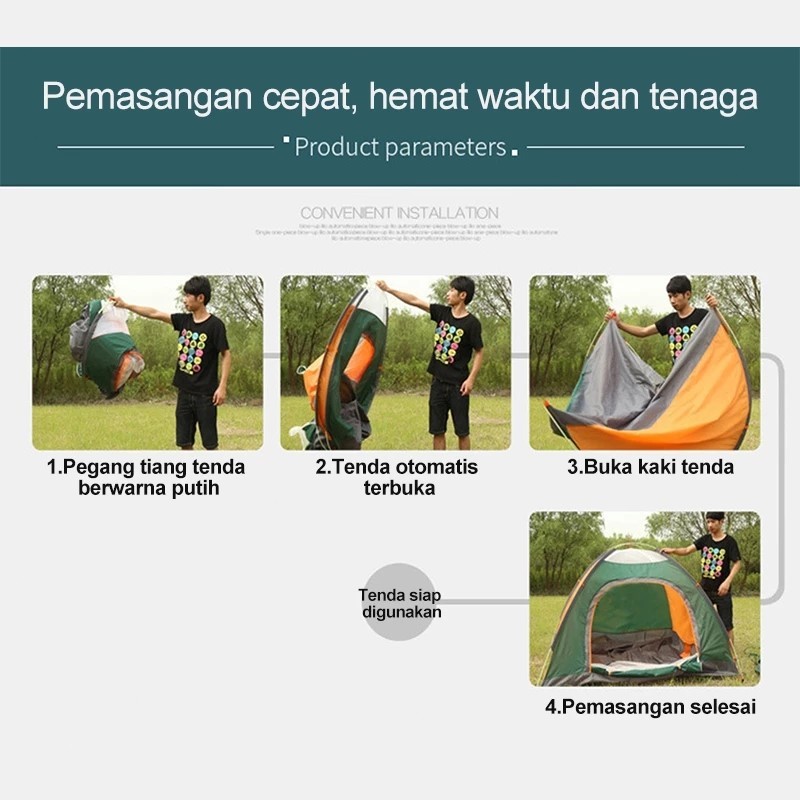 Tenda Kemah Luar R untuk 3-4 Orang, Portabel, Tebal Anti Hujan, Peralatan Kemah di Lapangan Liar