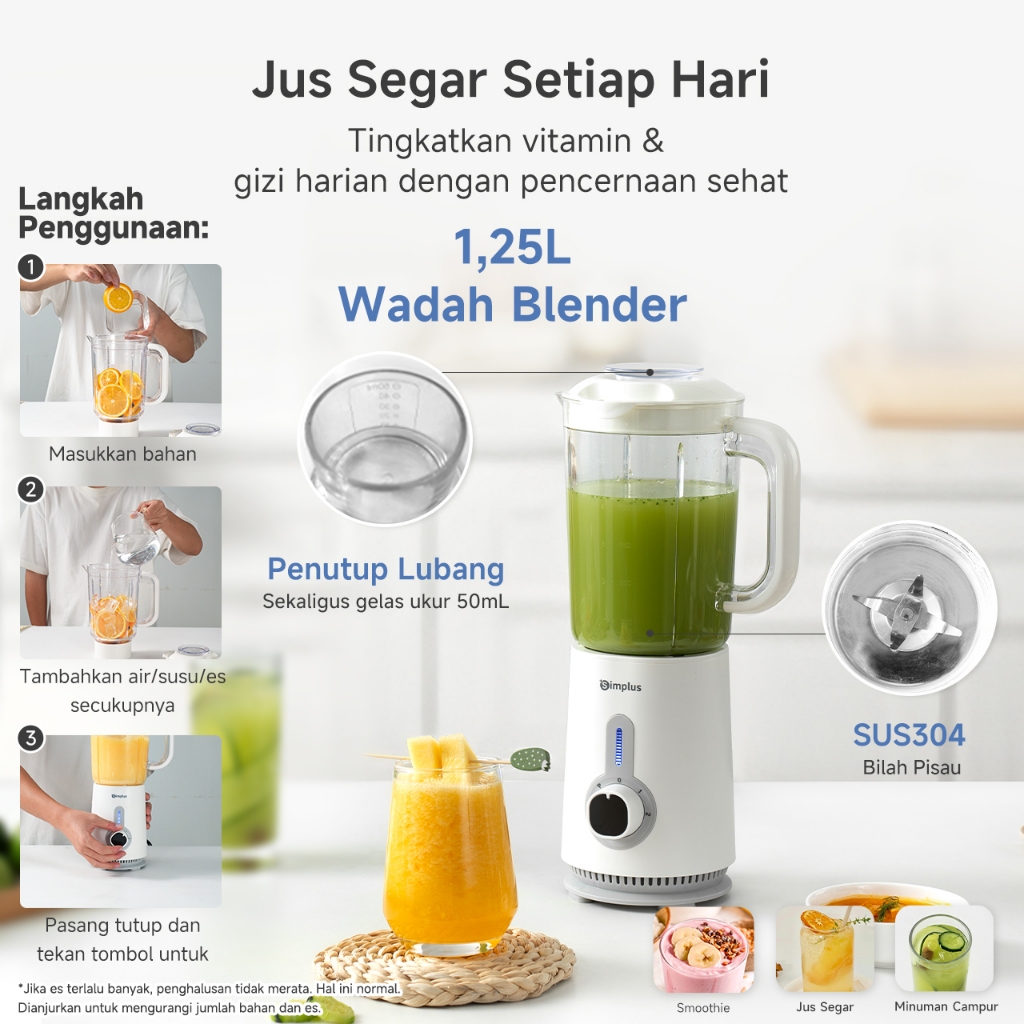 Simplus Blender 5-In-1 Serbaguna Penghalus Makanan 1,25L Blender+1L Bahan Food-Grade