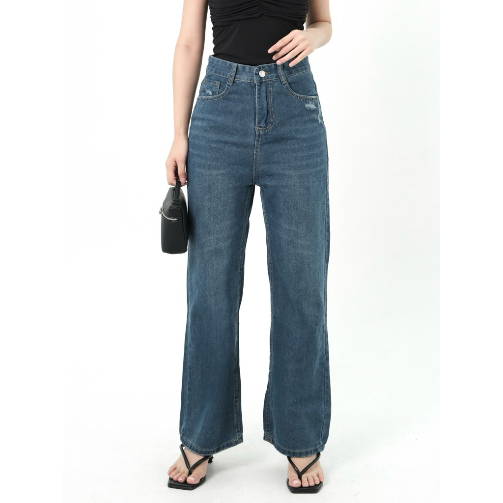 Celana Panjang Highwaist Wanita Jeans Premium Quality Jeans Wanita Polos Ripped Jeans Highwa