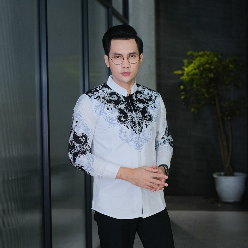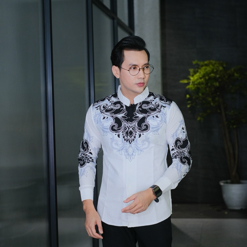 AMMAR KOKO Kemeja batik pria lengan panjang furing full katun slimfit KOKO putih bersih