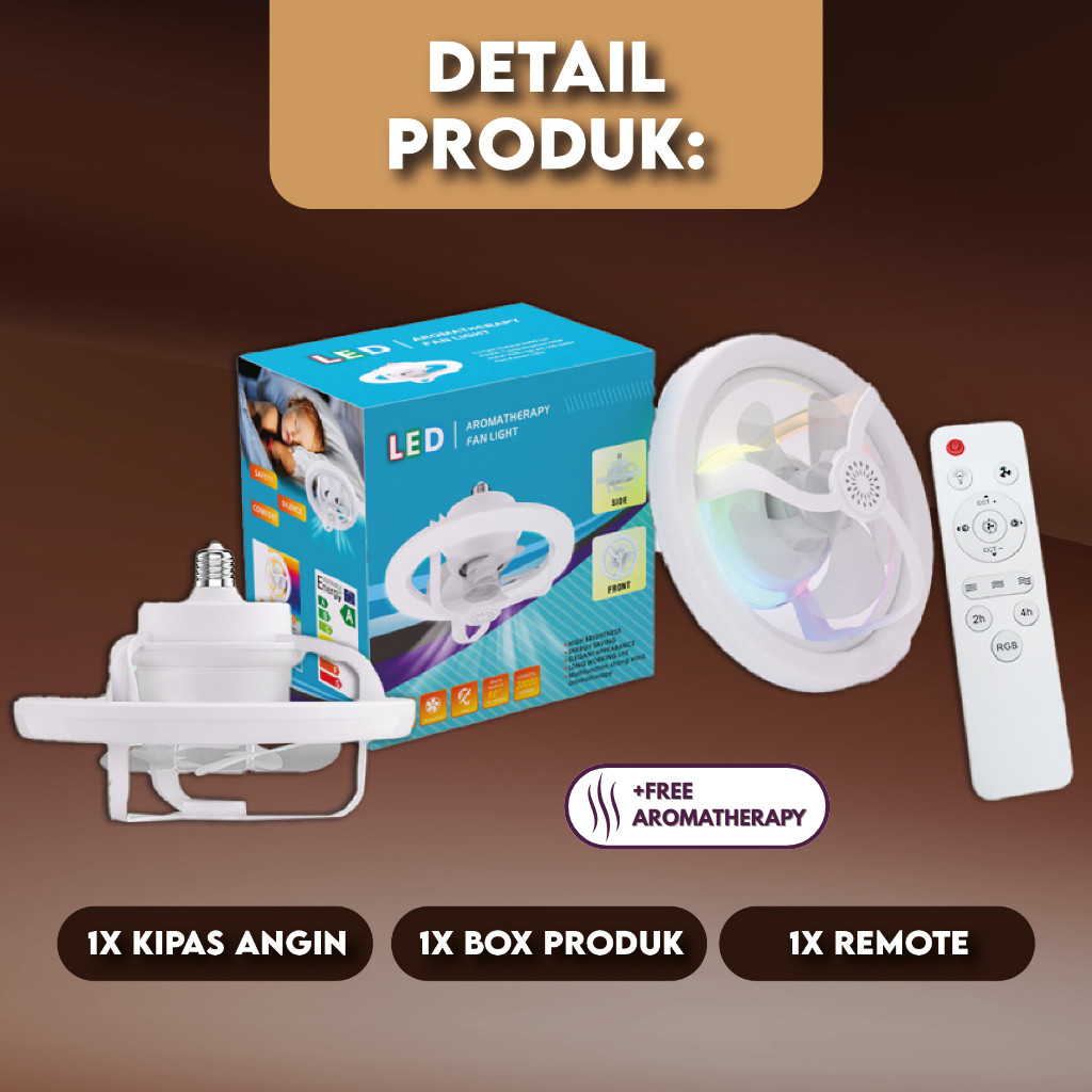 WEWANT Lampu Kipas Angin LED Gantung Plafon Minimalis 360° Rotation Aromatheraphy RGB 3Warna Remote