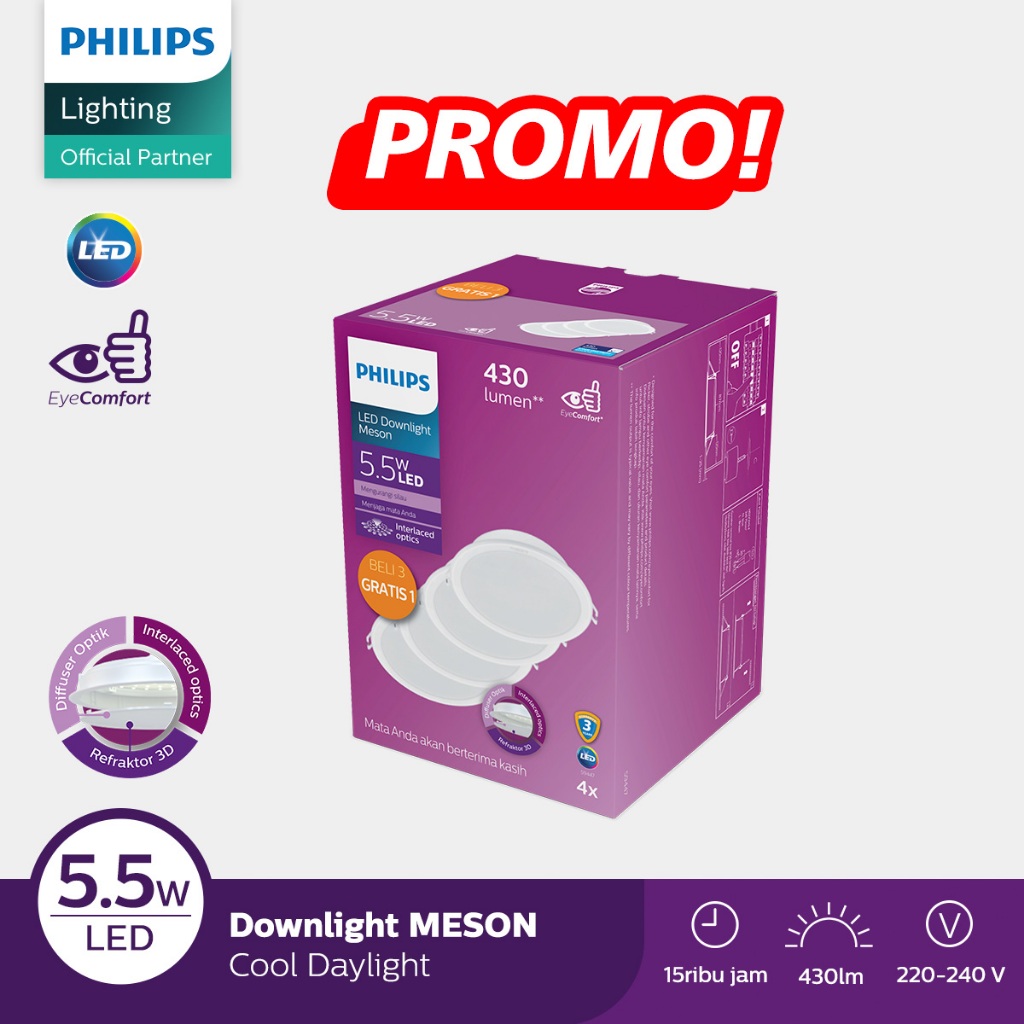 Lampu Philips Downlight 59447 Meson Multipack D90 5.5W 65K G5 Cahaya Putih