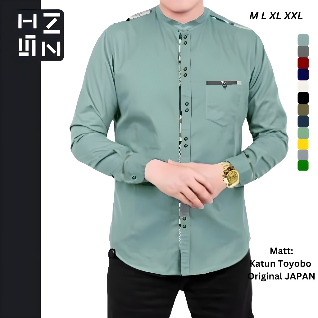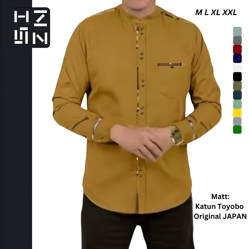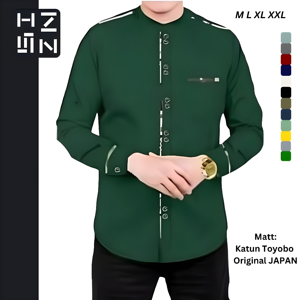 HNSN Koko Sultan Toyobo, Baju Kemeja Muslim Premium Qurta Pria Bahan Toyobo Original Japan - Hitam