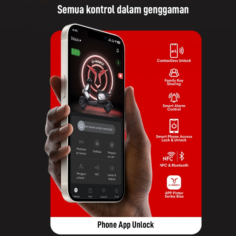 Sepeda Listrik Uwinfly D66A Smart Key Nfc N Bluetooth Sla 48V 12Ah Dengan Motor 600 Watt D 66 A Terbaru Garansi Resmi