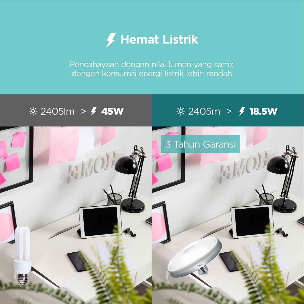 FELIX PREMIUM LED UFO 18.5W 3 Warna Cahaya Super Terang Hemat 90 PERSEN E27 Setara 241W Garansi 3 Tahun
