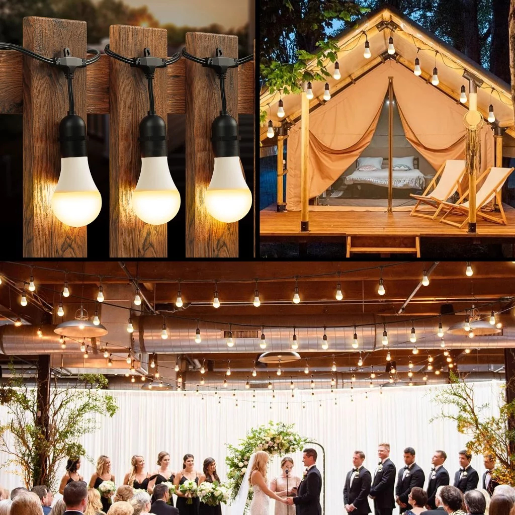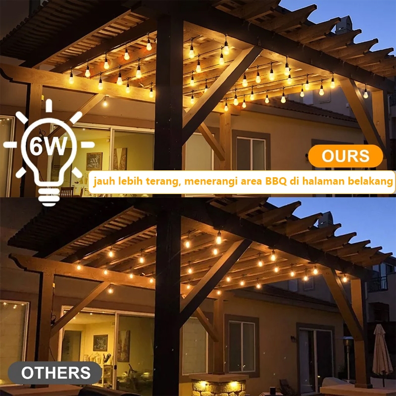 QIMEDO 30 Lampu Led 30 Meter Kabel Fitting 6Watt Kuning Bohlam Tahan Air Kafe Bola Kabel Tipe Updown