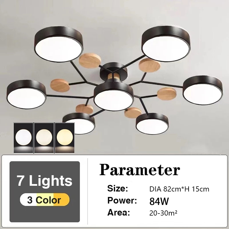 KMLKEMILING Lampu Plafon LED Tiga Warna Macaron Kayu Modern Minimalis 7 Kepala 5 Kepala Tricolor Ceiling Light untuk Ruang Tamu Kamar Tidur Dapur