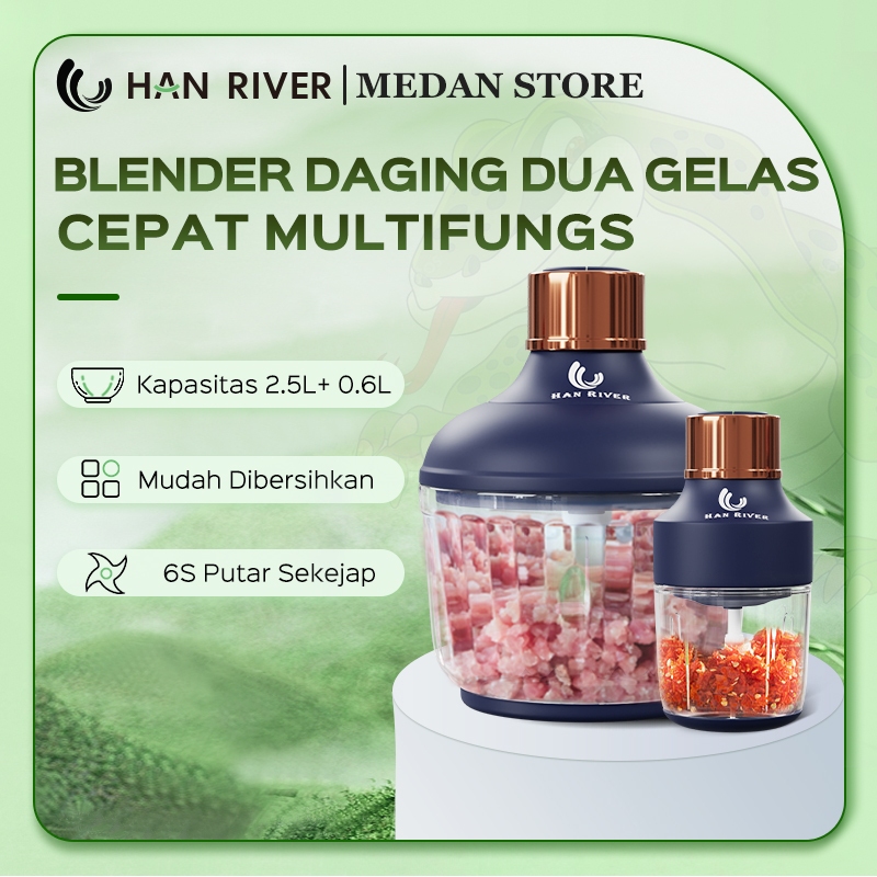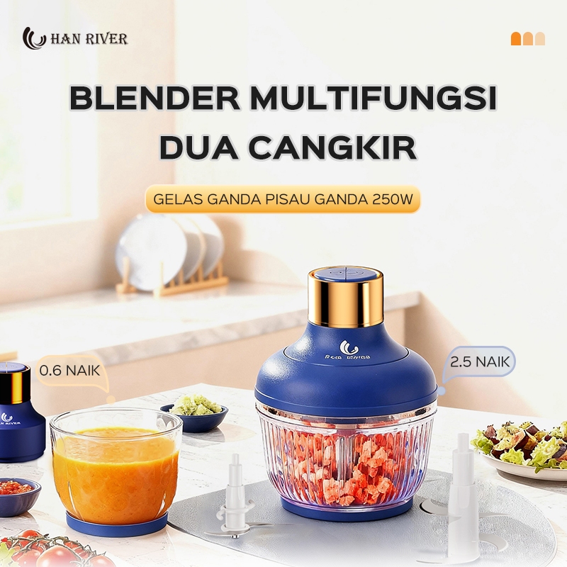 Han River Medan Chopper Elektrik Blender 2In1 Multifungsi Low Watt 2.5L Dan 0.6L