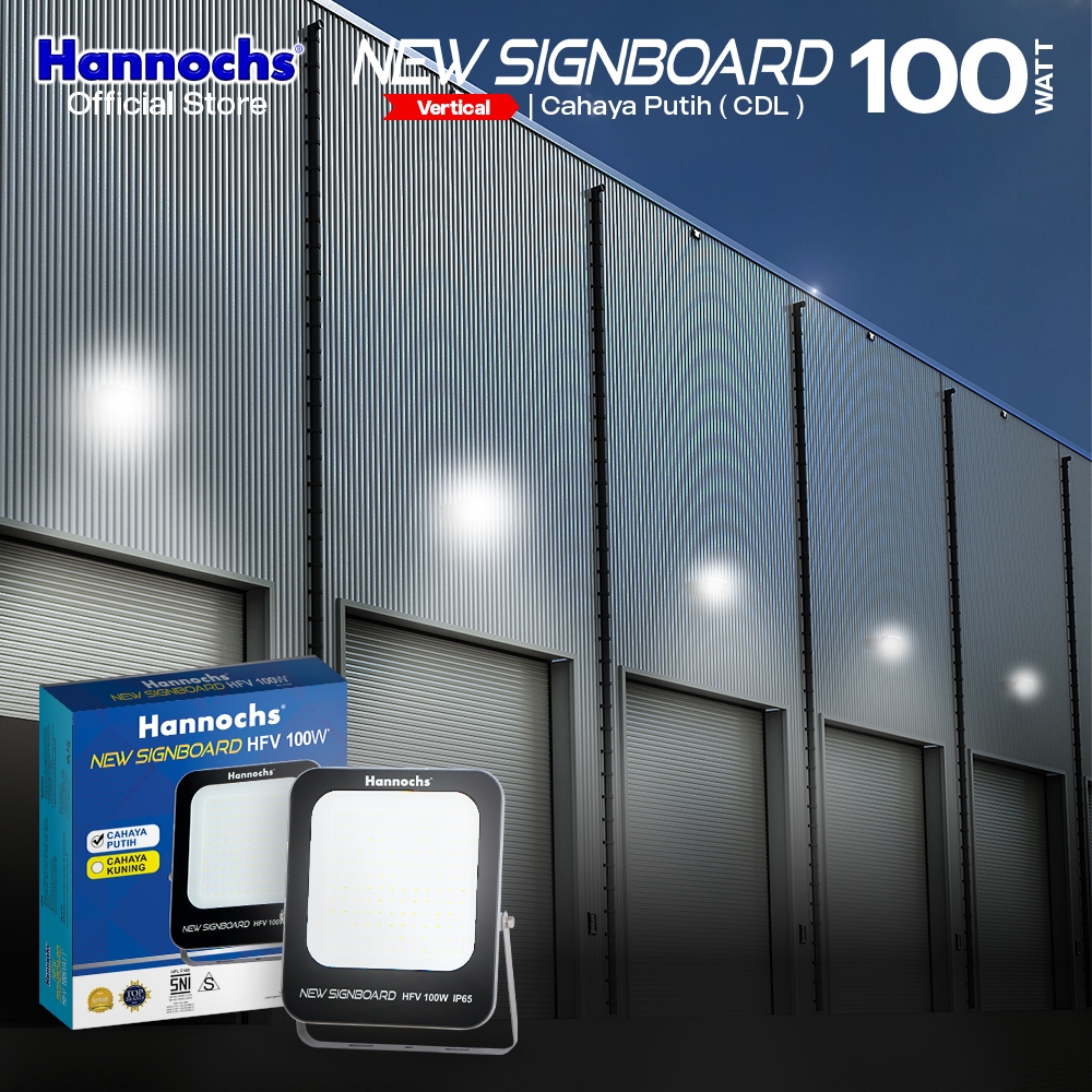 Hannochs Lampu Sorot LED Flood Light New Signboard HFV 100W Cahaya Putih Model Vertikal